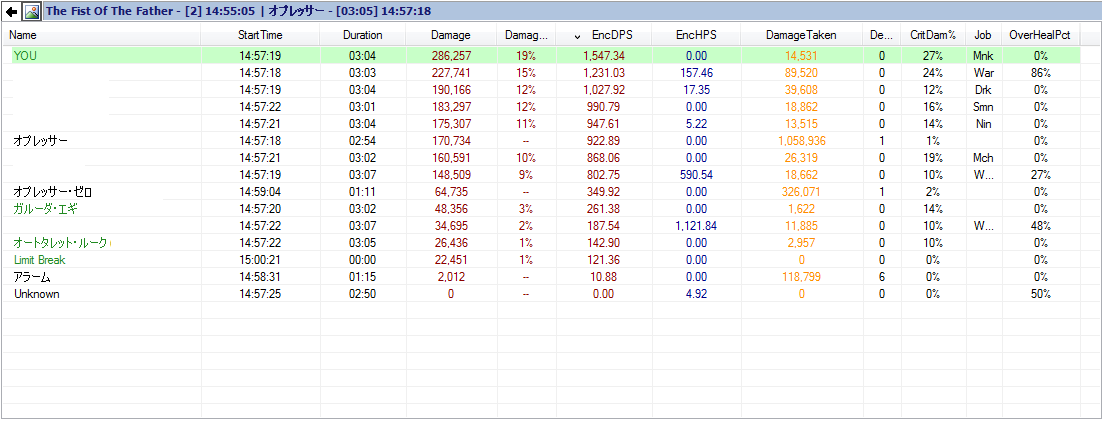 2016/02/28 Category : FF14(休) ACTの信用性 武器IL210 装備IL216(マテリア装着・フル禁断率8割)律動零式2層5,6秒残しがいいところですね。SS700台でTPが持たないので陰陽を使えないのが苦しいですが…他ジョブはTP消費が減ったりして特に何かを封印しないとなんてなさそうで、モンクが木人討滅で他より大きく必要DPSの数値が高いけど、その辺はあまり考慮されてないよなーとは思ってますね。ACTの数値はオーバーキルも考えて、ほぼほぼ正確に測定できてそうです。セフィロトは乗り遅れて練習PTがあまりないので雑魚Pすらまともにやれてません。