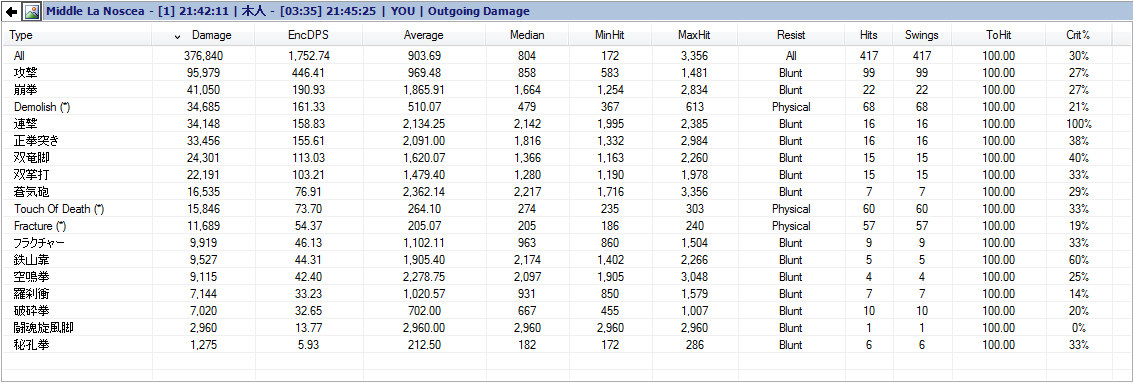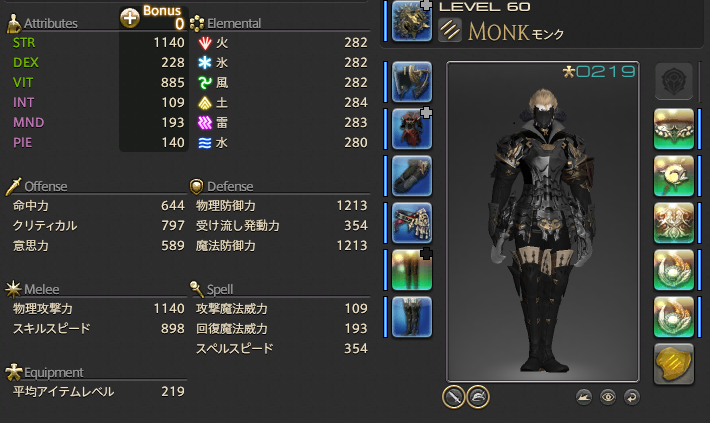2016/02/27 Category : FF14(休) 木人 平均IL215 武器210手腰 Nアレキ装備マテリアなしアクセ 全て新式(ジャ1ガ4)×3 (ジャ1)×1 (なし)×1Monk DPS Calculator DPS1590(3分)平均IL219 武器210伝承胴取得後 Monk DPS Calculator DPS1660(3分)TPが切れるまで3:32