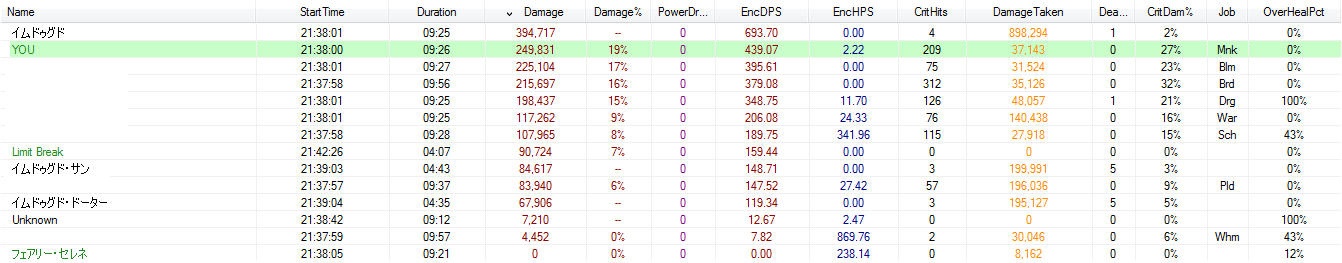 2014/12/31 Category : FF14(休) FF14 OverlayPluginにあるミニパースを少し弄ってみた。タンク青、ヒーラー緑、DPS赤、LB赤、ペット黄で統一。知識はほとんどないけど、適当に調べながらでもそれっぽく作れるからいいね。SSを少し加工してるから見えにくいけど、実際はここまで見えにくくはない。わりと気にいっているかな。 PR