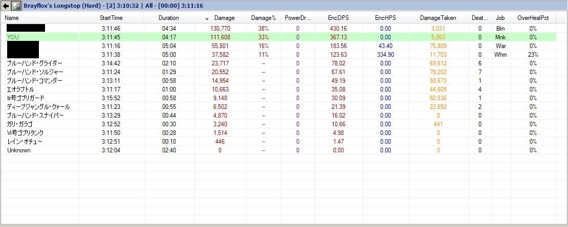 2014/04/09 Category : FF14(休) FF14 雑記 ●ゾディアックウェポン神話周回の回転がはやく、週1冊予定だったのが週1.5冊ペースでやれてます。とはいえ、周回募集の9割以上が黒募集状態なので、モンクは基本お呼びでない。レアFATEの待ち時間は他のことをしながらでいいし、アートマ集めよりよっぽど楽。●バハ侵攻編平日バハとかめんどくさいので、週末のみやってます。固定の人はかなりやる気なんだけど、俺はそうでもないんだよね。ただ足は引っ張りたくないので、できるかぎりやれる事はやってます。●2.2新式・禁断DPSは火力だしてなんぼなので、装備はそれなりに揃えたい。俺がこのゲームのDPSチェックで足を引っ張ることはないと思うけど準備は大事。というか、装備強化でもしないとモチベも上がってこない。3部位5禁断で装備を更新したけど、命中はアクセ以外の他は命中なしでも十分いける。完成形を見据えてやらずに失敗の禁断。意思力をもう少し積んでもいいかなと思ったけど、命中にして妥協。全体的に命中が楽になり、IL100以上の武器にも命中があるので命中はほどほどで妥協。戦記強化ベルトに匹敵する性能らしいので、長く使えると思います。最後の戦技に52回もかかって、ガの5禁断とか俺はぜったいやりたくない。●ブレフロダッシュ黒黒や黒召、黒詩が鉄板で、モンクで入り込むのは至難の業ですが、まぁやれなくもないかなーというくらいのダメージは出せます。本来5分きれるところが5分20秒ほどかかるので、やはりお荷物感はありますが。橋まとめで即踏鳴なら、ボス後の3グループまとめの中盤くらいにまた使えるので、まずまずの削りが可能です。ボスは当然モンクが強いですし。最高5分19秒で野良募集でもこのはやさ。モンク黒で5分切ることは可能なのかな…●5層ツインタニアもうじき超える力がきますが、サブキャラ出荷の手伝いにいってきました。俺のツインタニア詩人はIL81しかないので、CFでひっかかるのでめんどくさい。これのためにわざわざ、アクセ1つ取りにいって調整する羽目になって悲惨でした。黒など一部野良のひとで、他は身内。竜なしでしかもIL81でこれとか詩人強すぎだろ!パッチ2.1モンクでDPS330は出るけど、詩人も同じくらいいきそうなんだけど…